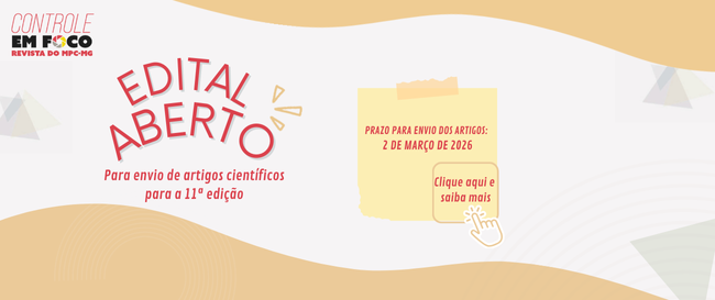 A “Controle em Foco: Revista do MPC-MG” publicou, nesta quinta-feira, 15, o Edital n. 001/2026, que regulamenta a submissão de artigos científicos que comporão sua 11ª edição.